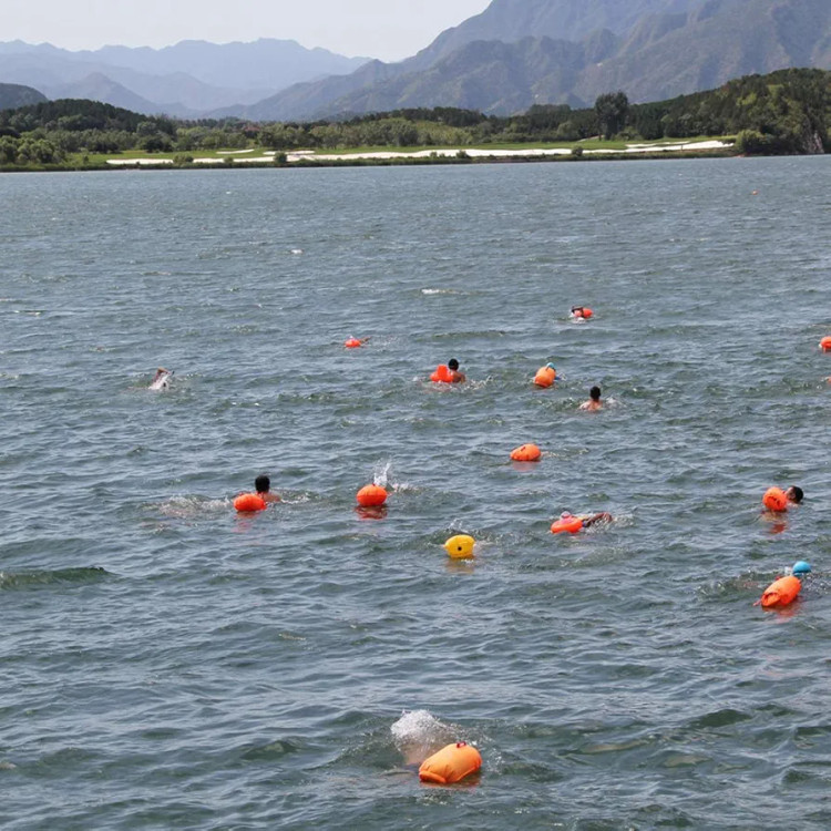 بویه شنا و کیسه شناور برای شنا در آبهای آزاد، با دید بالا، ضدآب و قابل باد شدن از جنس PVC، مناسب تریاتلون (زرد فلورسنت)