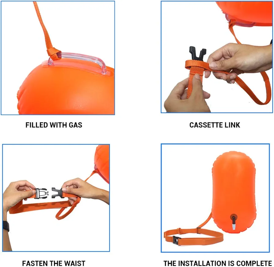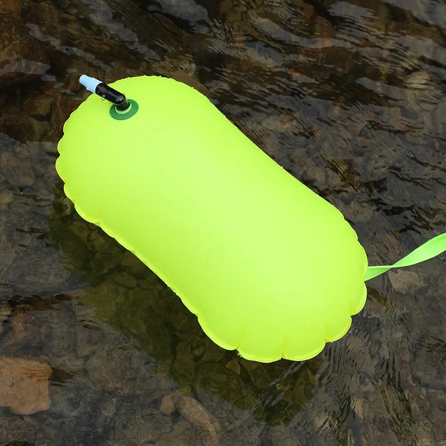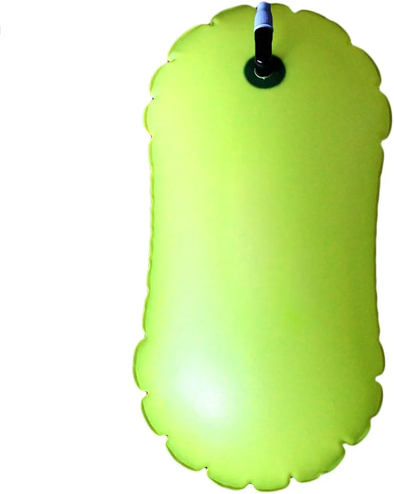 بویه شنا و کیسه شناور برای شنا در آبهای آزاد، با دید بالا، ضدآب و قابل باد شدن از جنس PVC، مناسب تریاتلون (زرد فلورسنت)