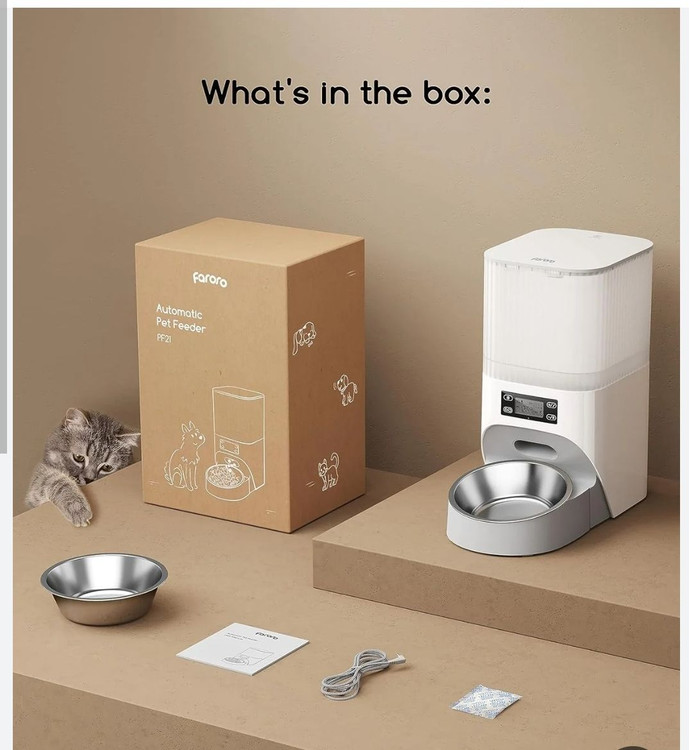 غذادهنده اتوماتیک Faroro امکان تنظیم ۱ تا ۶ وعده غذایی در روز را دارد. مقدار هر وعده بین ۱ تا ۲۰ پیمانه (هر پیمانه حدود ۶.۵ گرم) قابل تنظیم است تا بتوانید برنامه غذایی سالمی برای حیوان خود تنظیم کنید.