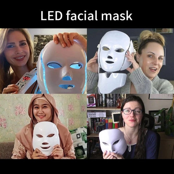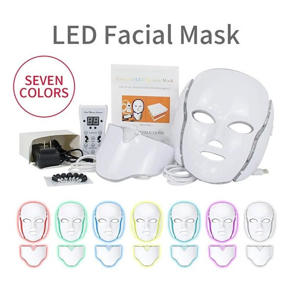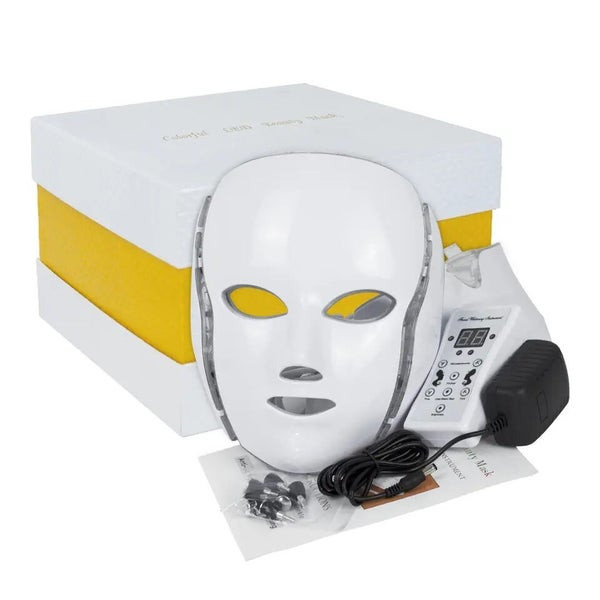 ماسک نقابی صورت و گردن LED نور درمانی در 7 رنگ،اورجینال(به سفارش بریتانیا)