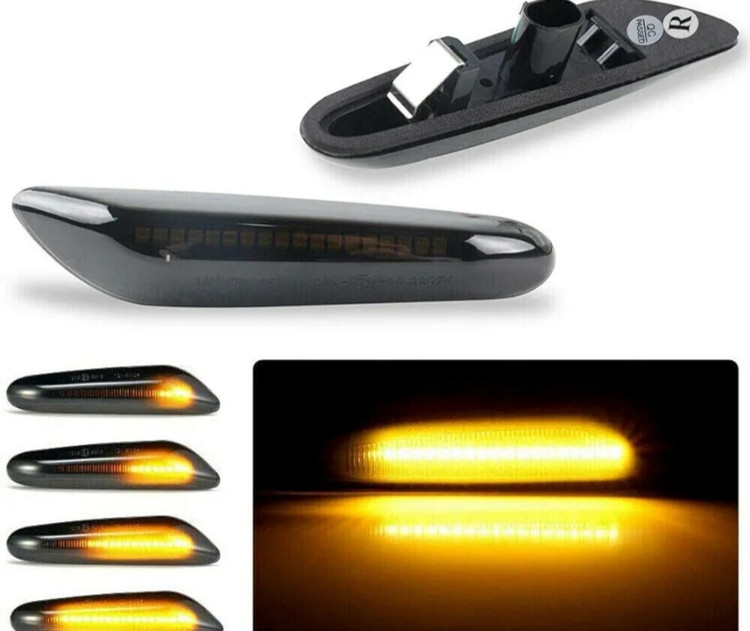 GSRECY Dynamic Amber LED Front Fender Side Marker Light Sequential Blinker Turn Signal Lamp For E90 E91 E92 E93 E46 E60 E53 X3 E83 X 1 E84 E81 E82 E87 E88,Smoke Lens