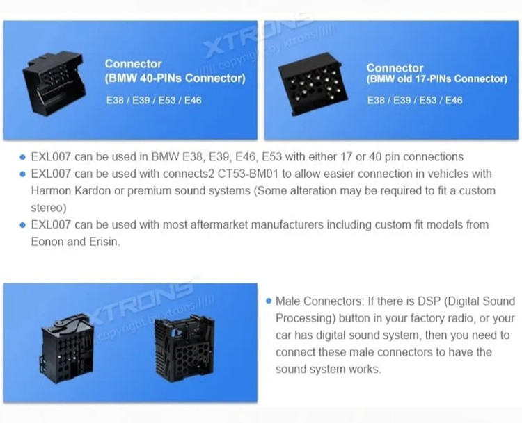 کانکتور ICE/ACS/EXL007 خودرو بی ام و مدل های E38,E39,E48,E53 برند XTRONS