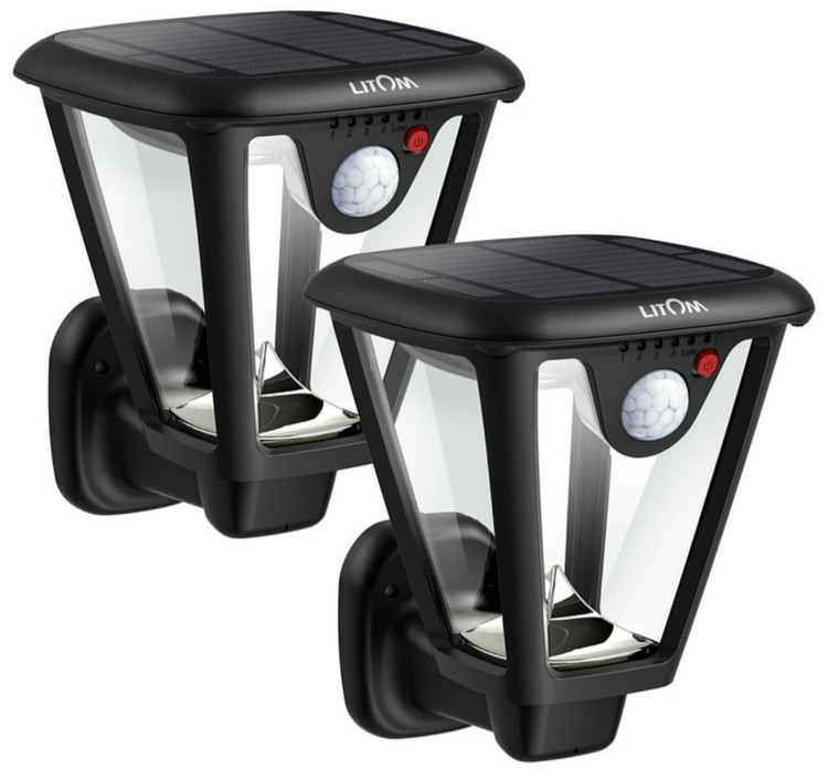 چراغ فانوس دیواری خورشیدی ضد آب 3000 لومینیوم سنسور دار برند LITOM پک دو عددی