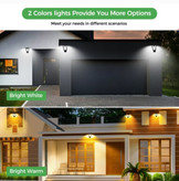 [4 حالت رعد و برق اختیاری + 2 رنگ قابل تنظیم] نور خورشیدی ارتقا یافته LITOM در فضای باز با چراغ نشانگر 4 حالت: 1) حالت نور زیاد، 2) حالت نور معمولی، 3) حالت نور کم، 4) حالت روشن ماندن. دمای رنگ دوگانه برای انتخاب شما: 1) نور رنگ گرم را می توان برای برجسته کردن عناصر معماری استفاده کرد. 2) نور سفید سرد را می توان برای سطح بالاتری از امنیت انتخاب کرد. فانوس دیواری خورشیدی امنیتی LITOM می تواند به راحتی حالت های نور را بر اساس نیاز شما تغییر دهد.
