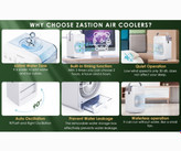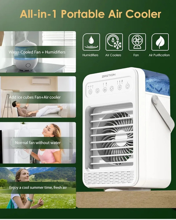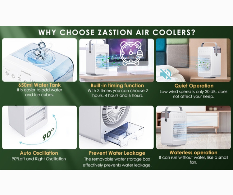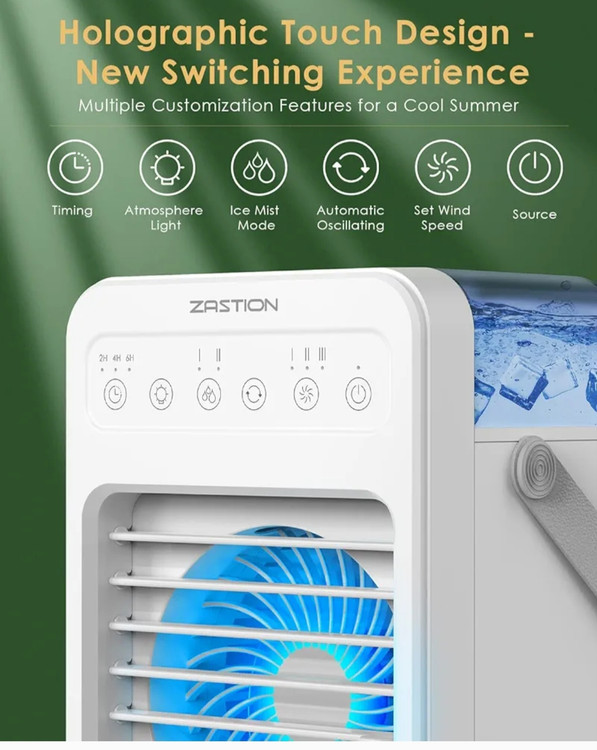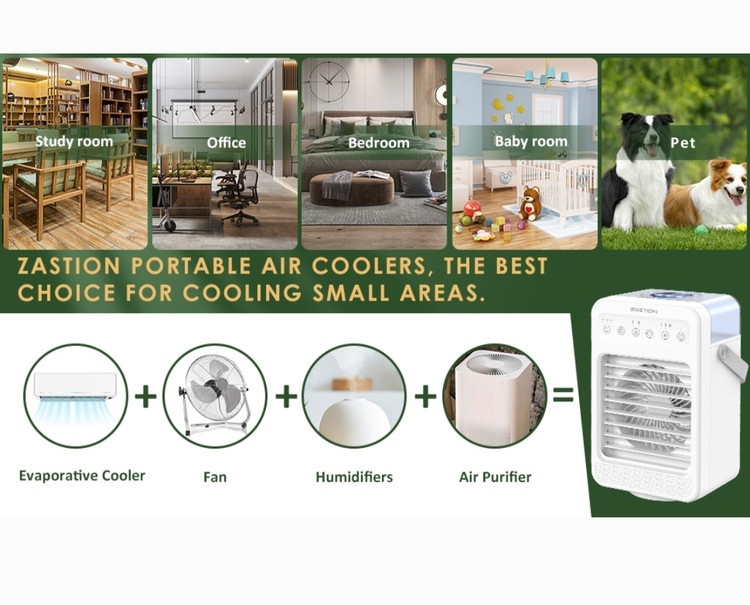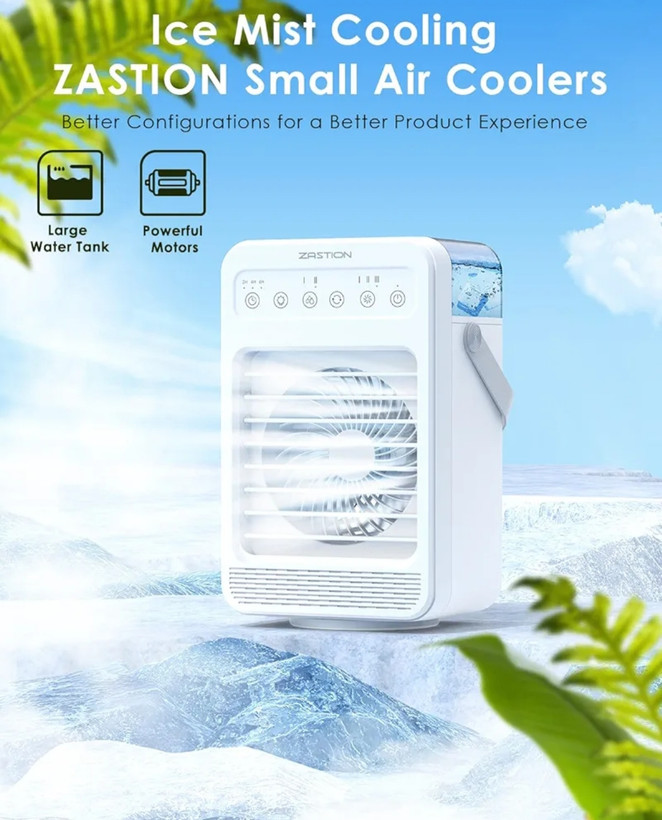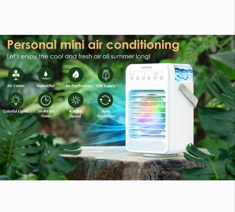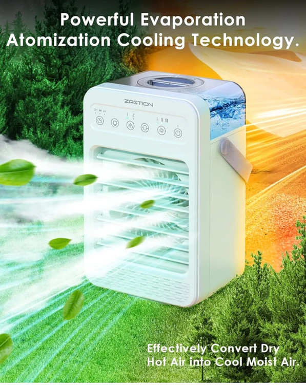 کولر گازی متحرک کم مصرف: کولر گازی سیار ZASTION از چند حالت منبع تغذیه USB پشتیبانی می کند. کولر گازی سیار در مقایسه با سایر کولرگازی ها انرژی کمتری مصرف می کند و می تواند به شما کمک کند حداقل 50 درصد در قبض برق خود صرفه جویی کنید. طراحی دسته سبک وزن آن را بسیار قابل حمل می کند. کولرهای هوا با توجه به اندازه جمع و جورشان بیشتر برای سرمایش شخصی مناسب هستند.