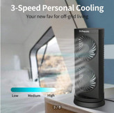 3 تایمر خاموش خودکار: همراه با 3 گزینه تایمر، از جمله 2H، 4H و 8H، به این فن رومیزی اجازه می دهد تا هوای مرطوب را در شب برای تهویه بهتر و خنک شدن طولانی مدت در تخت شما به گردش درآورد.