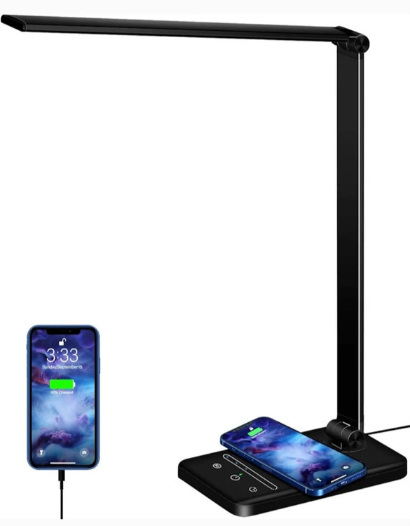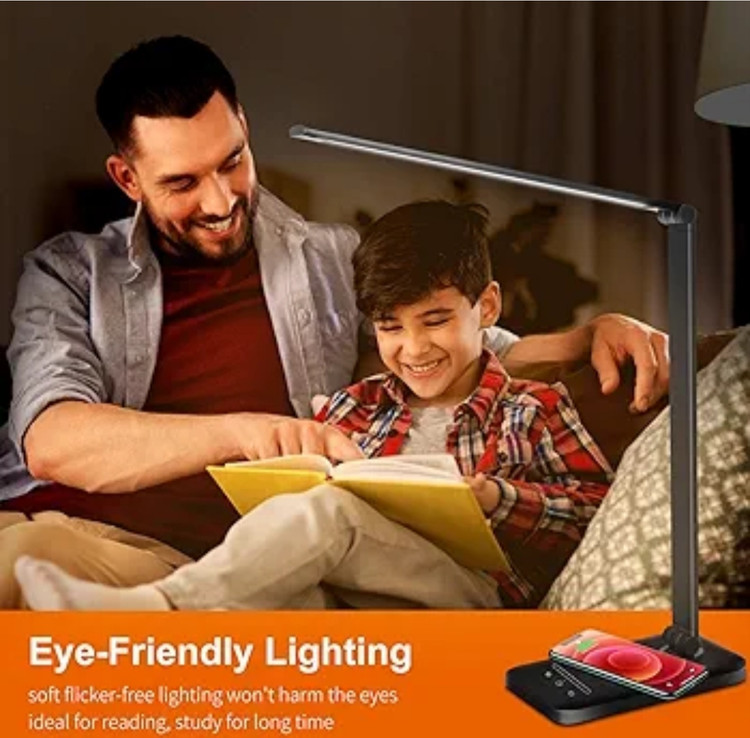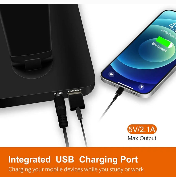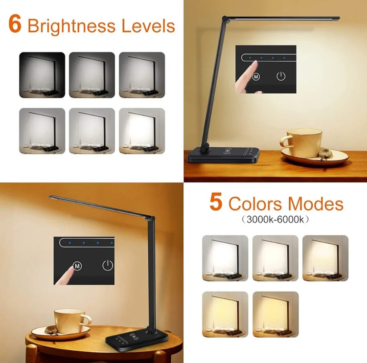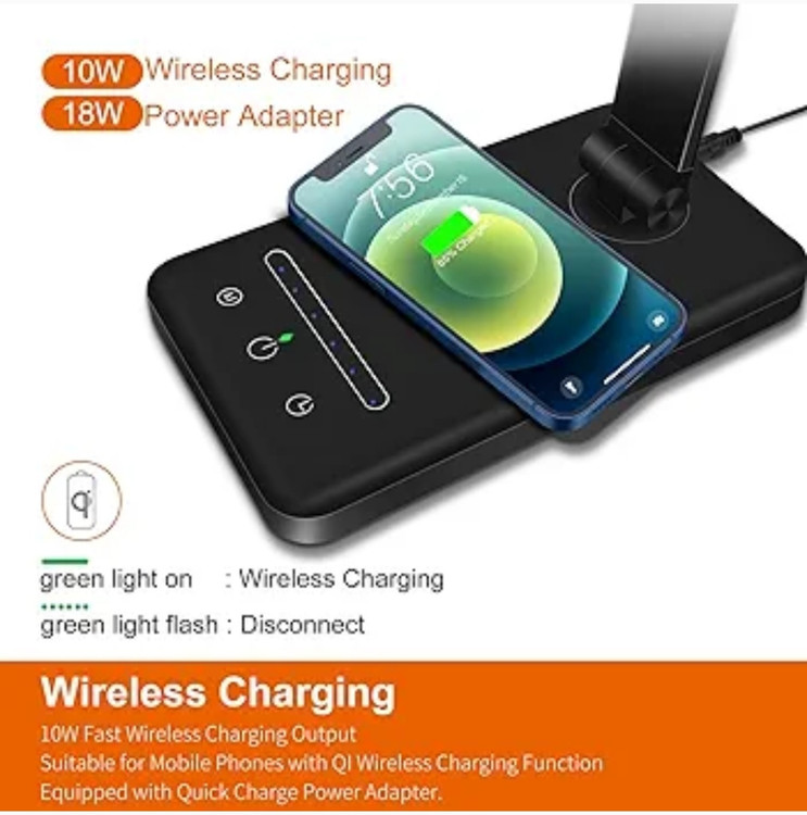 شارژ بی سیم و از طریق USB یکپارچه: لامپ رومیزی بی سیم دارای شارژ بی سیم از طریق القایی است، به سادگی گوشی هوشمند سازگار خود را روی پایه قرار دهید، نیازی به کابل ندارید، همچنین می توانید آن را از طریق USB از طریق پورت داخلی شارژ کنید.