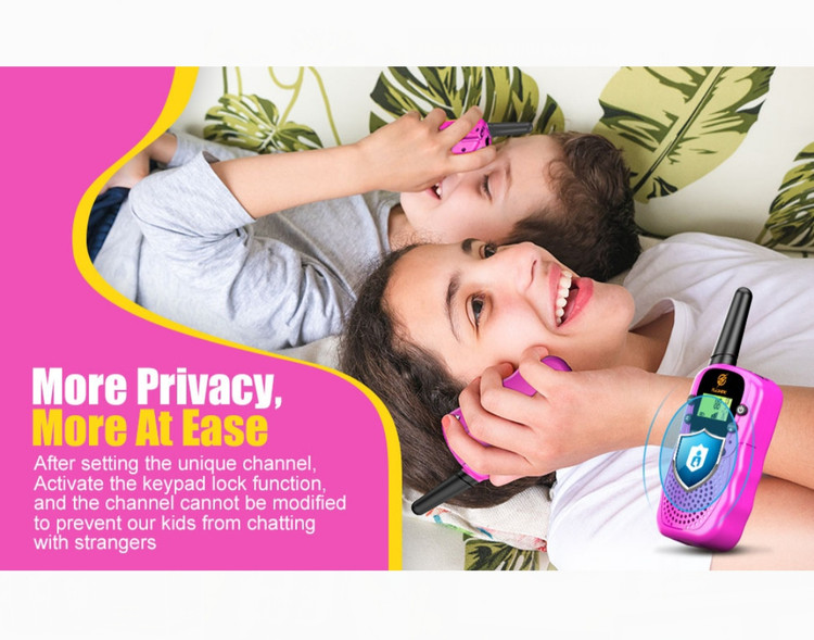 برد طولانی و دردسر کمتر: بچههای ما میتوانند از بازی در مسافت طولانی لذت ببرند و دنیایی از امکانات را در ماجراجوییهای کودکانمان در فضای باز با برد چشمگیر 1.9 مایل باز کنند. 22 کانال با 99 زیرکد CTCSS حریم خصوصی تماس را تا حد زیادی بهبود می بخشد و فرزندان ما توسط غریبه ها مزاحم نمی شوند.