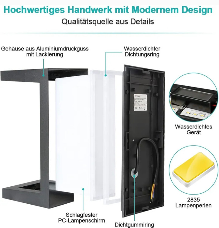 IP65 حفاظت cl: آباژور چراغ دیواری LED از مواد ضد آب ساخته شده است. محافظ ضد آب cl IP65 می تواند حتی در روزهای بارانی یا برفی کاملاً کار کند. چراغ دیواری با آلومینیوم دایکاست یک تکه با خلوص بالا، بادوام و بادوام.