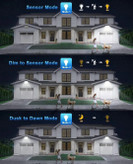 سنسور حساس PIR و CDS این چراغ حسگر حرکت خورشیدی حرکت را در فاصله 20 تا 26 فوتی در زاویه تشخیص 120 تشخیص می دهد. در طول روز خاموش بمانید و در نور خورشید شارژ کنید. در شب، چراغ های خورشیدی به طور خودکار روشن می شوند یا به راحتی توسط انسان یا حیوان روشن می شوند (این بستگی به حالتی دارد که شما تنظیم می کنید). می توان از آن به عنوان چراغ سیلاب امنیتی خورشیدی برای ترساندن متجاوزان استفاده کرد.