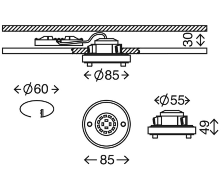اندازه نصب 2.36 اینچ (60 میلی متر) (D)