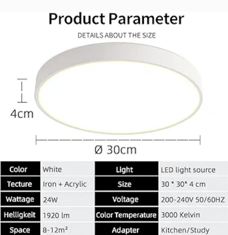 Style home 24 W LED Ceiling Light Kitchen Lamp Round Lamp for Hallway Kitchen Hallway Bedroom 30 x 30 x 4 cm (24 W White)