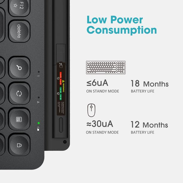 4. مصرف برق کم. صفحه کلید جمع و جور در حالت آماده به کار انرژی کمی به اندازه 6uA مصرف می کند و تا 18 ماه کار می کند. به لطف حالت هوشمند 3 مرحله ای صرفه جویی در انرژی، ماوس بی سیم در صورت عدم استفاده در مصرف انرژی صرفه جویی می کند. و می تواند تا 12 ماه برق داشته باشد.