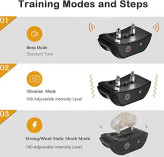 【4 حالت تمرین و 100 سطح شدت】 قلاده شوک برای سگ ها سطح شوک استاتیک و لرزش 1-100 و همچنین حالت Tone و حالت نور را ارائه می دهد. می تواند برای کمک به اصلاح پارس کردن، راه رفتن، تمرین افسار، نشستن، ادرار کردن، پرخاشگری و سایر اطاعت رفتاری استفاده شود.