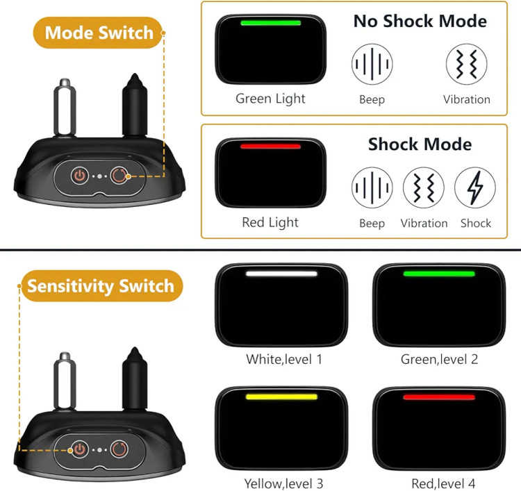قلاده ی کنترل پارس سگ مناسب آموزش سگ ها این قلاده با برخورداری از ویبره؛ می تواند در آموزش و کنترل سگ به شما کمک کند. دارای 6 سطح ویبره بوده و همچنین در حالت های مختلف اتوماتیک قابل تنظیم است و با حساسیت به صدای پارس سگ بطور خودکار روشن می شود. می توان بر حسب نژاد و وزن سگ میزان ویبره ی آن را جهت اثرگذاری بیشتر تعیین نمود. این قلاده حتی برای سگ های بزرگ نژاد بولداگ مناسب است. 6 حالت اتوماتیک ویبره و صدای بوق نشانگر led در 4 رنگ دارای سری شوک اضافه + و محافظ شوک دارای بند برزنتی بسیار محکم دارای شارژر جهت شارژ قلاده این قلاده ایمن بوده و به جسم سگ هیچ آسیبی وارد نمی کند
