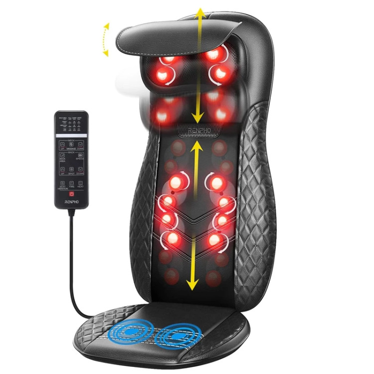 ماساژ پشت شیاستو با گرما - 8 گره ورز دادن عمیق و ماساژ شیاتسو به بالا و پایین حرکت می کنند. بین ماساژ کامل پشت، ماساژ بالای پشت یا ماساژ پایین کمر را انتخاب کنید و ماساژ خود را بر روی آن ناحیه متمرکز کنید تا آرامسازی دقیقی داشته باشید. بالش ماساژ با قابلیت تنظیم ارتفاع - در مقایسه با سایر صندلیها، این صندلی ماساژور مجهز به یک بالش ماساژ انعطافپذیر با گرما است، ارتفاع بالش ماساژ را برای ماساژ بهتر گردن و شانه تنظیم کرده و برای اکثر خانوادههای شما مناسب است. گرمای تسکین دهنده و لرزش صندلی - این بالشتک ماساژ صندلی گرمای تسکین دهنده و لرزش صندلی را ارائه می دهد که می تواند به شما کمک کند آرامش بیشتری داشته باشید. گره های شیاتسو با عملکرد گرمای اختیاری شما را گرم می کند و در عین حال آرامش را در کل گردن، پشت، کمر و شانه های خود به ارمغان می آورد. لرزش روی صندلی با تنظیم شدت 3 سطح قابل تنظیم، یک ماساژ راحت را برای لگن و ران ها فراهم می کند. لطفا توجه داشته باشید که هیچ عملکرد گرمایی روی صندلی ماساژور وجود ندارد ماساژور پشتی راحت برای صندلی - از این ماساژور پشتی روی مبل، کاناپه، صندلی، صندلی اداری یا صندلی ناهارخوری استفاده کنید تا در نهایت صندلی راحتی در خانه داشته باشید. سیستم تسمه یکپارچه در اطراف صندلی عقب صندلی ها بسته می شود هدیه نفیس - چرم پلی اورتان با کیفیت بالا باعث دوام و تمیز کردن آسان آن می شود. آن را برای خود یا دوستی که از ناراحتی های گردن، شانه ها و پشت رنج می برد تهیه کنید. استفاده از ماساژور پشت به مدت 30 دقیقه در روز به آرامش بدن کمک می کند. یک هدیه عالی