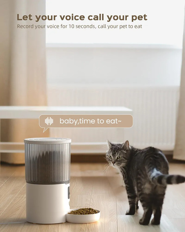 پشتیبانی از منابع برق دوگانه: پلاگین کابل USB و باتری ها . تغذیه گربه که با باتری کار می کند هنگام قطع برق آرامش خاطر را فراهم می کند. حتی اگر دستگاه آفلاین باشد (وایفای سیگنال ندارد)، فیدری که از باتری تغذیه میکند همچنان در زمانی که تنظیم کردهاید تغذیه میشود.خدمات قابل اعتماد و راضی:اگر در حین استفاده با مشکلی مواجه شدید،برنامه هوشمند و اتصال وای فای 2.4 گیگاهرتز: تنظیم خودکار تغذیه حیوانات خانگی ما آسان است. از هر دو فرکانس 2.4 گیگاهرتز پشتیبانی می کند. حیوان خانگی خود را در هر زمان و هر کجا از طریق برنامه تغذیه کنید. صدای 10 ثانیه ای از قبل ضبط شده هنگام تغذیه پخش می شود. اجازه دهید حیوان خانگی شما صدای شما را دوست داشته باشد. (APP POOEKEN، پشتیبان APP Smart Life) ظرفیت کافی: تغذیه گربه اتوماتیک ما تا 4 لیتر غذای خشک حیوانات خانگی را در خود جای می دهد. به حیوانات خانگی خود غذا دهید و آنها را در حالی که دور هستید سرگرم کنید، همه چیز از نوک انگشتان شما! وقتی به یک سفر کاری کوتاه می روید، دیگر نگران گرسنه بودن حیوان خانگی خود نباشید.تغذیه تازه و تمیز کردن آسان: تغذیه کننده خودکار غذای گربه ما دارای کیسه خشک کن داخلی (شامل) است که غذا را تازه و ترد نگه می دارد. مخزن غذا، درب و کاسه برای تمیز کردن آسان قابل جابجایی هستند. (توجه: اگر فیدر از فیدر خیلی دور باشد، باعث آفلاین شدن فیدر می شود)،پشتیبانی از منابع تغذیه دوگانه: پلاگین کابل USB (شامل) و باتری ها (شامل نمی شود). فیدر گربه که با باتری کار می کند، هنگام قطع برق، آرامش خاطر را فراهم می کند. حتی اگر دستگاه آفلاین باشد (وایفای سیگنال ندارد)، تغذیهکنندهای که از باتری تغذیه میکند همچنان در زمانی که شما تنظیم کردهاید تغذیه میشود. (توجه: حیوانات مستعد جویدن سیمهای برق هستند و در نتیجه نمیتوانند روشن شوند)