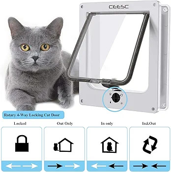 CEESC Large Cat Flap, Magnetic Pet Door with Rotating 4-Way Lock for Cats, Kittens and Kittens (Large, White)