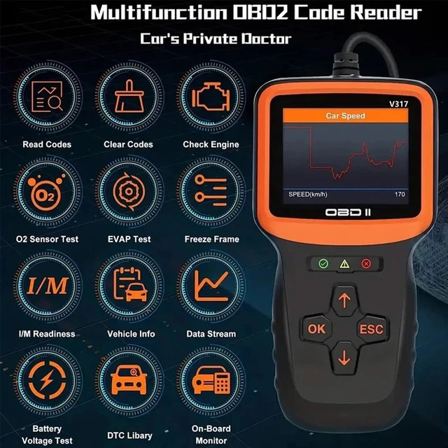 اسکنر OBD2 چند کاره ابزار تشخیصی اسکنر OBD2 عملکردهای عملی مختلفی دارد. آسان به ues. کتابخانه جستجوی داخلی OBD2 DTC، که به شما کمک می کند تا علت نور موتور، خواندن کد، پاک کردن کد، مشاهده فریم فریز، آمادگی I/M و داده های I/M تاریخی، اطلاعات خودرو، جریان داده، داده های زنده را تعیین کنید. جریان و منحنی زنده، دریافت اطلاعات سرعت خودرو، محاسبه مقدار بار، دمای مایع خنک کننده موتور، دریافت سرعت موتور. این نگهدارنده موفق خودروها است.