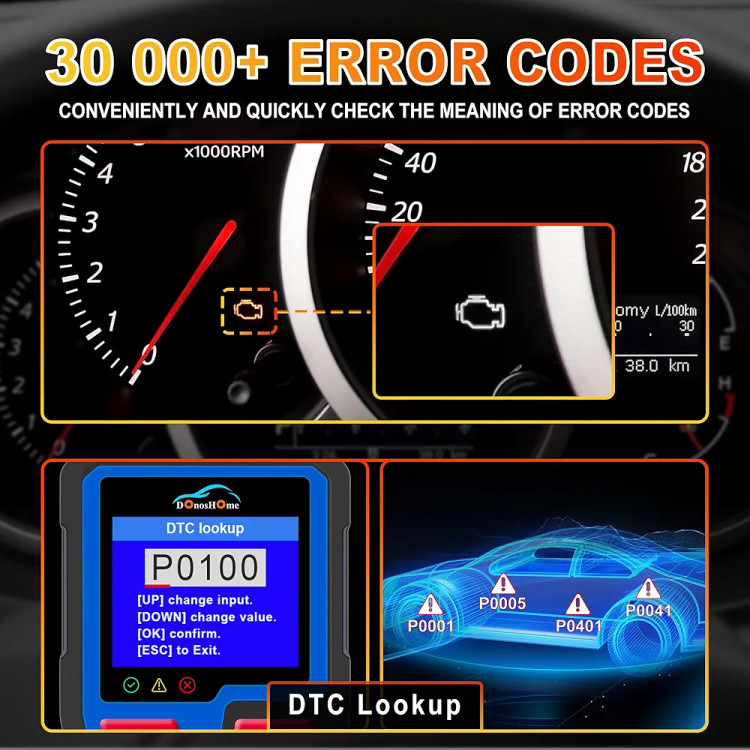 تشخیص دقیق تشخیصی فرانسوی OBD2: کیس تشخیص خودکار DonosHome DH300 OBD2 ما مستقیماً نتایج دقیقی ایجاد می کند. این به طور ویژه برای تشخیص سریع و دقیق مشکلات خودرو و ارائه داده های بلادرنگ طراحی شده است و از عیب یابی کارآمد و تجزیه و تحلیل دقیق اطمینان حاصل می کند. به لطف تراشه های صنعتی پیشرفته، 3 برابر سریعتر از کدخوان های معمولی اسکن می شود، تا 99.8٪، دقت تشخیصی آن می تواند به 99.8٪ برسد.