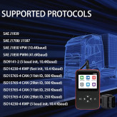 【چاپ گزارش سلامت】 از عملکرد چاپ USB برای چاپ کدهای خطا، رابط Type-c، جریان داده و فریز کردن اطلاعات قاب پشتیبانی کنید. یک گزارش تشخیصی ایجاد کنید و سپس آن را در رایانه خود چاپ کنید. همچنین این یک هدیه عالی برای خانواده و دوستان است. همچنین از هفت زبان انگلیسی، چینی، ایتالیایی، فرانسوی، اسپانیایی، آلمانی، روسی پشتیبانی می کند. همچنین برای اطمینان از اینکه دستگاه می تواند با موتورهای مختلف استفاده شود، به کابل های مختلف 6 پین، 9 پین و 16 پین مجهز شده است.