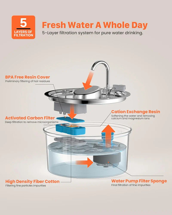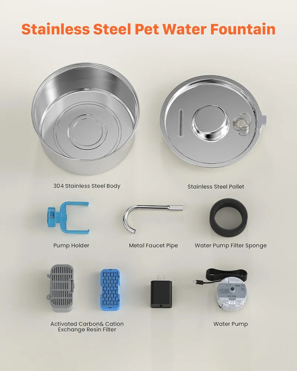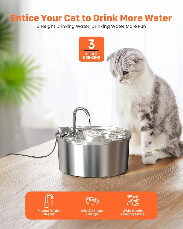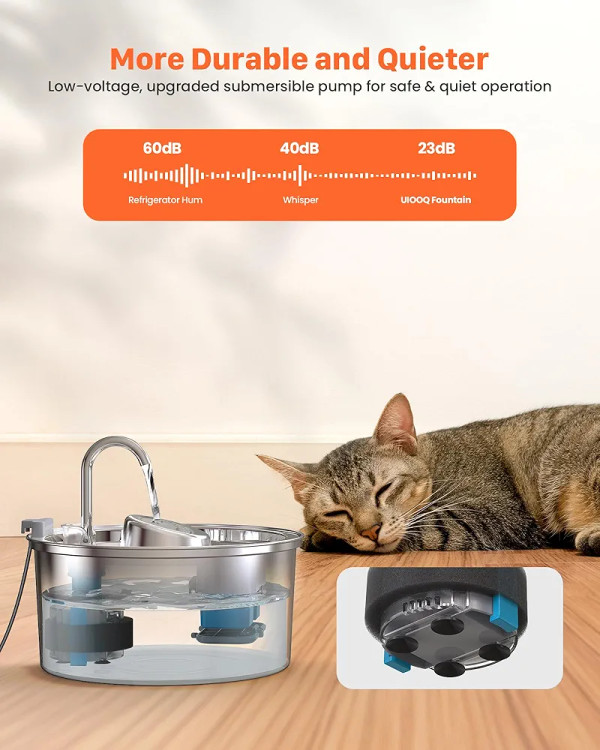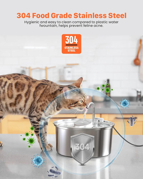 KOOGMOON Pet Water Fountains, Food Grade Stainless Steel, 3.2 L Large Capacity, 20dB Super Silent