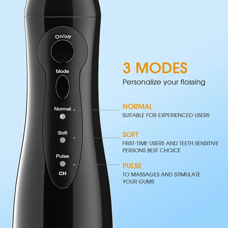 مخزن آب قابل جدا شدن 300 میلی لیتر و ضد آب IPX7: مخزن بزرگ آب 300 میلی لیتری نخ دندان را به اندازه کافی و بدون وقفه فراهم می کند. این آبیاری دهان با طراحی ضد آب IPX7 قابل استفاده در حمام می باشد. لطفاً به یاد داشته باشید که هنگام استفاده، درگاه شارژ را محکم بپوشانید.