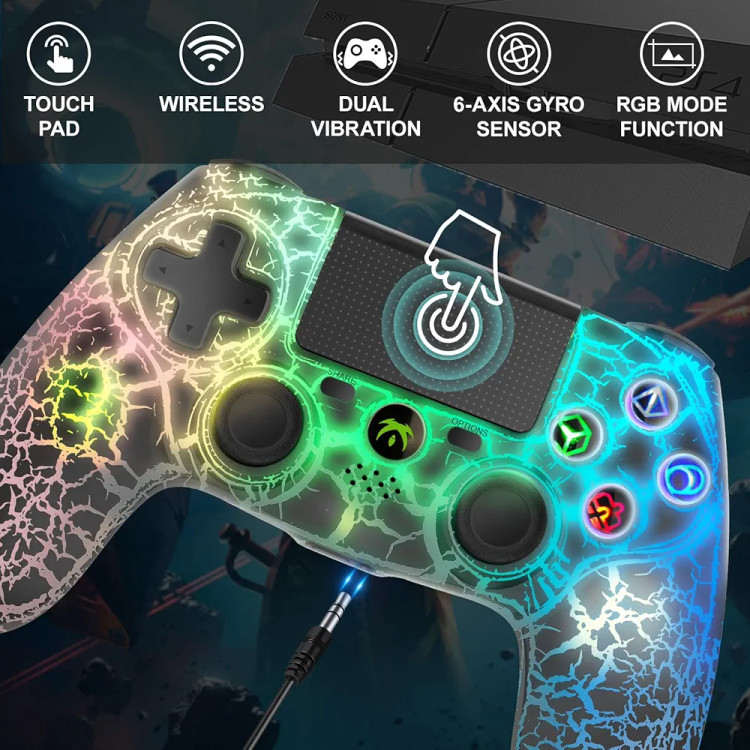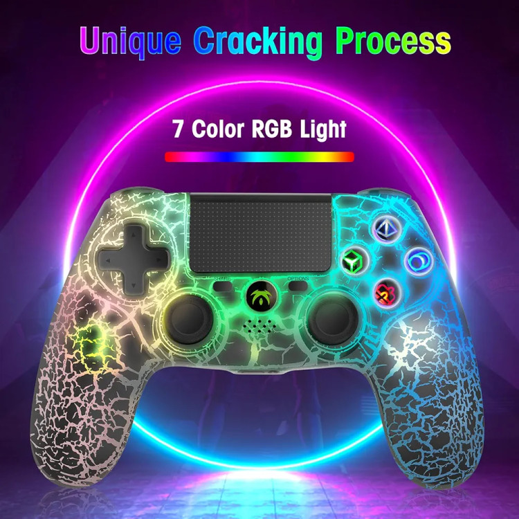 دسته بازی RGB بی سیم DYONDER برای PS4,لب تاب،تب لت،موبایل گیم پد کنترل از راه دور بی سیم،با طراحی منحصر به فرد ترک خورده،لرزش دوگانه،سنسور حرکت 6 محوره،عملکرد صوتی،کنترلر بازی به طور گستره با PS/PC/IOS سازگار است