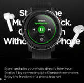 این ساعت هوشمند 2 گیگابایت حافظه داخلی را در دسترس کاربر قرار میدهد و بنابراین، امکان ذخیرهسازی فایلهای موسیقی وجود دارد. شما میتوانید با اتصال ساعت هوشمند به هدفون بیسیم خود، به صورت مستقیم و بدون نیاز به گوشی، در هنگام فعالیتهای ورزشی از شنیدن موسیقی مورد علاقه خود نیز لذت ببرید.