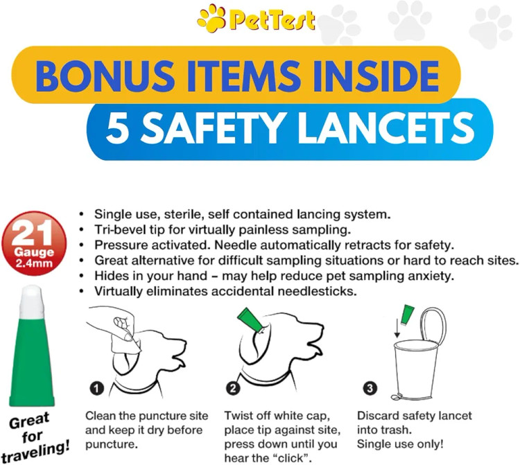 مطمئن باشید: مدیریت دیابت حیوان خانگی شما می تواند یک چالش باشد، اما کیت آزمایش قابل اعتماد ما روند آزمایش و جمع آوری نمونه های خون را ساده می کند. این کیت شامل 25 لنتس ایمنی است که به شما کمک می کند تا به راحتی شروع کنید. لوازم دیابتی همه جانبه PetTest برای سگ ها و گربه ها که برای سهولت استفاده طراحی شده است، ایجاد یک روال جدید را آسان می کند.
