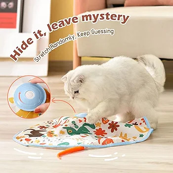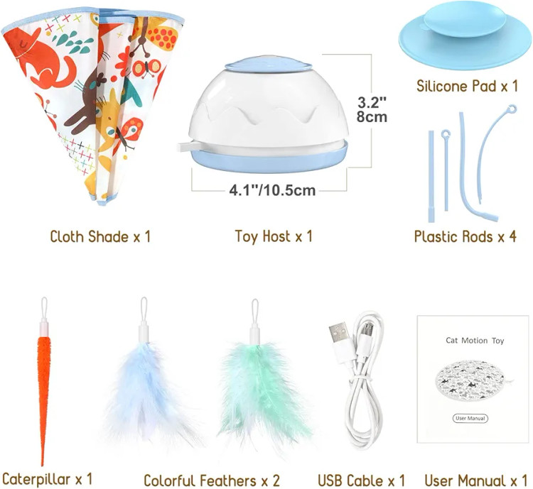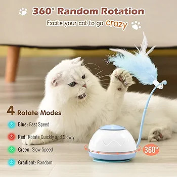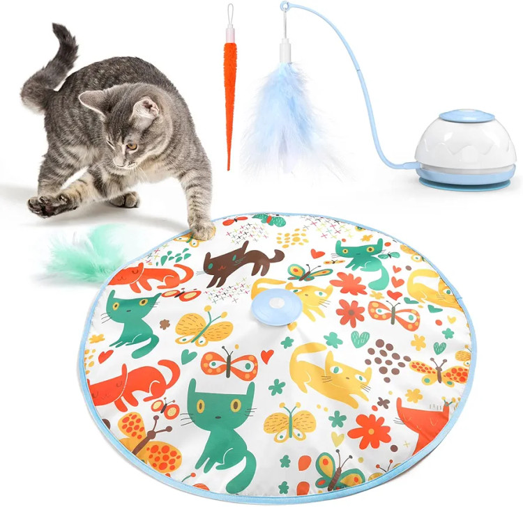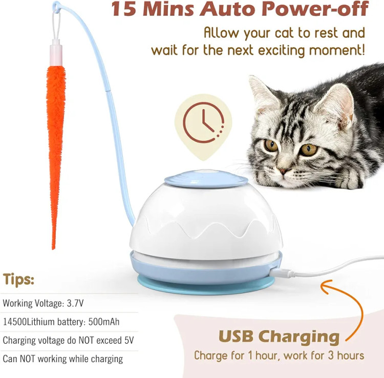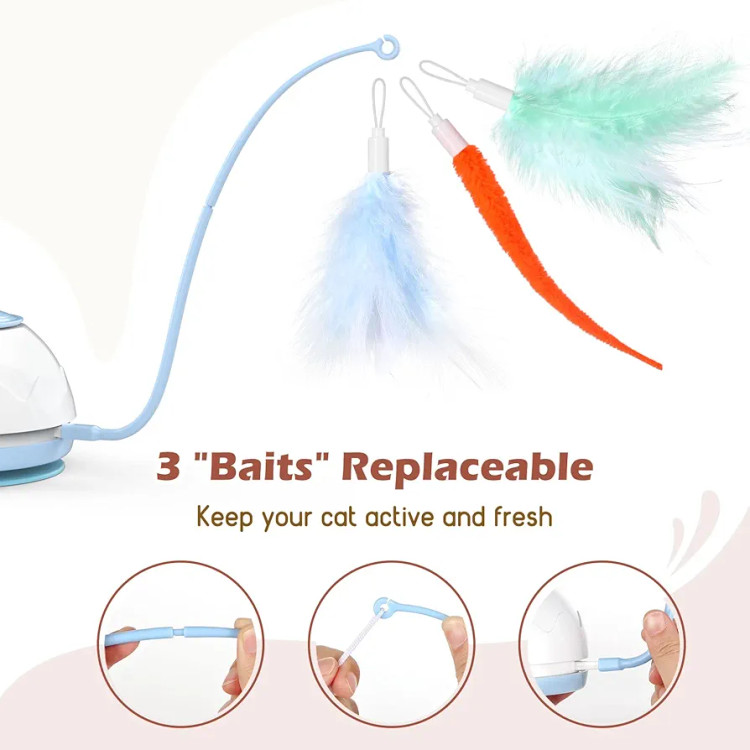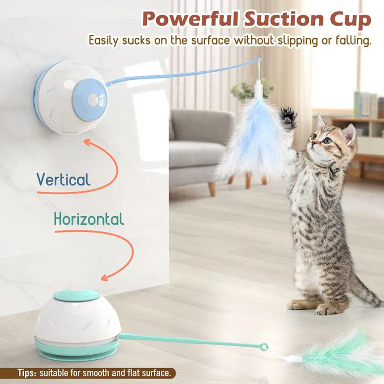 Pawaboo 2 in 1 Electric Cat Toys, USB Rechargeable Automatic Cat Exercise Teaser Toy with 3pcs Replacement, Indoor Interactive Cat Toy, Pop and Play Feather Teaser Wand Toy for Cat Kitten Kitty, Blue
