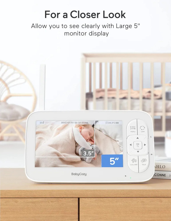دوربین کنترل کودک با کیفیت HD(720p) برند Babycozy دارای مانیتور مخصوص و توانایی بزرگ نمایی تصویر