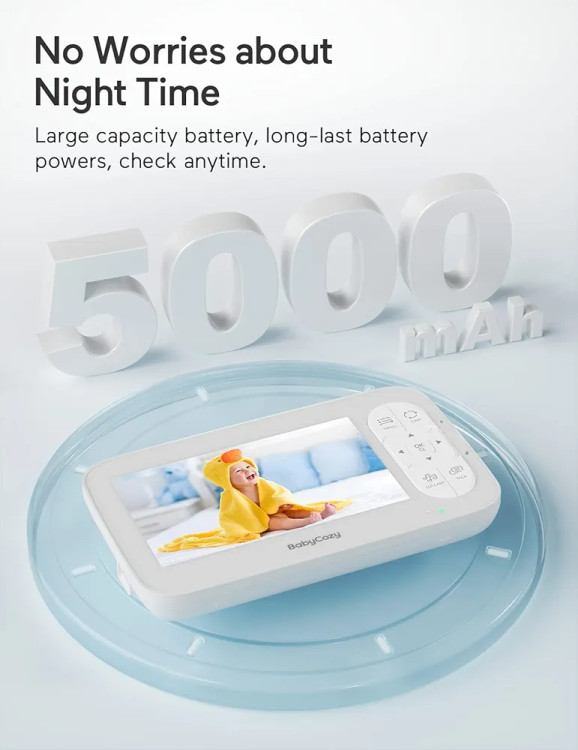 【باتری تمام شب】 باتری داخلی با ظرفیت 5000mah، تمام شب با اطمینان از آن استفاده کنید و دستان خود را برای محافظت از آن در تمام طول روز باز کنید. این مانیتور Babycozy بسیار خوب بسته بندی شده است، همه چیز جای خود را در جعبه دارد و به خوبی توسط فوم محافظت می شود، ارزش هدیه دادن را دارد، می توانید یک هدیه متفکر برای بچه های تازه متولد شده، مادر باردار داشته باشید.