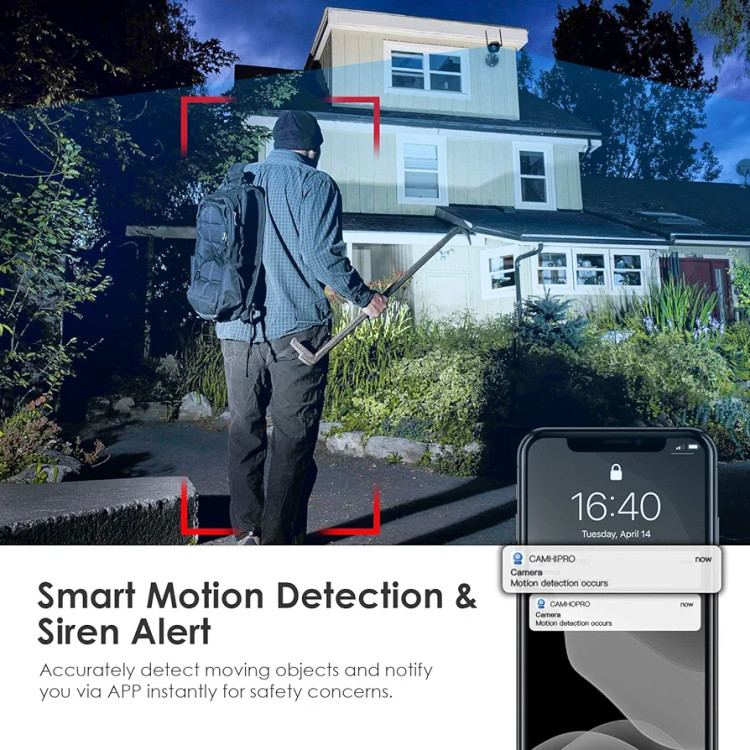 🏃【𝗦𝗺𝗮𝗿𝘁𝗲𝗿 𝗠𝗼𝘁𝗶𝗼𝗻 𝗗𝗲 𝗶𝗺𝗲 𝗡𝗼𝘁𝗶𝗳𝗶𝗰𝗮𝘁𝗶𝗼𝗻】دوربین امنیتی بی سیم در فضای باز مجهز به تشخیص حرکت هوشمندتر است. هنگام تشخیص حرکت، اعلان هشدار بیدرنگ به تلفن شما ارسال میشود و زنگ هشدار برای ترساندن دزد به صدا در میآید. می توانید ناحیه تشخیص حرکت و حساسیت را برای کاهش آلارم های کاذب تنظیم کنید. دوربین مدار بسته بی سیم از اعلان های ایمیل نیز پشتیبانی می کند.
