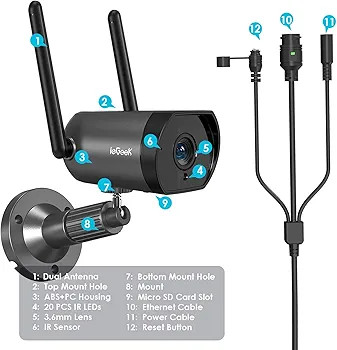 📡【𝗜𝗺𝗽𝗿𝗼𝘃𝗲𝗱 𝟰𝗱𝗕𝗶 𝗗𝘂𝗮𝗹 𝗪𝗶-𝗙𝗶 𝗔𝗻𝘁𝗲𝗻𝗻𝗮&𝗠𝗼𝗿𝗲 𝗦𝘁𝗮𝗯𝗹𝗲 𝗪𝗶𝗳𝗶 𝗖𝗼𝗻𝗻𝗲𝗰𝘁𝗶𝗼𝗻】The ieGeek wireless security camera outdoor is equipped with improved 4dBi dual wifi antenna, which makes wifi connection more stable compared to the separate 3dBi wifi antenna. لازم نیست نگران قطع شدن اتصال وای فای دوربین باشید و می توانید فیلم دوربین را در هر جایی تماشا کنید. با پیروی از راهنمای انگلیسی به راحتی می توانید اتصال وای فای دوربین را در 2 تا 5 دقیقه کامل کنید.