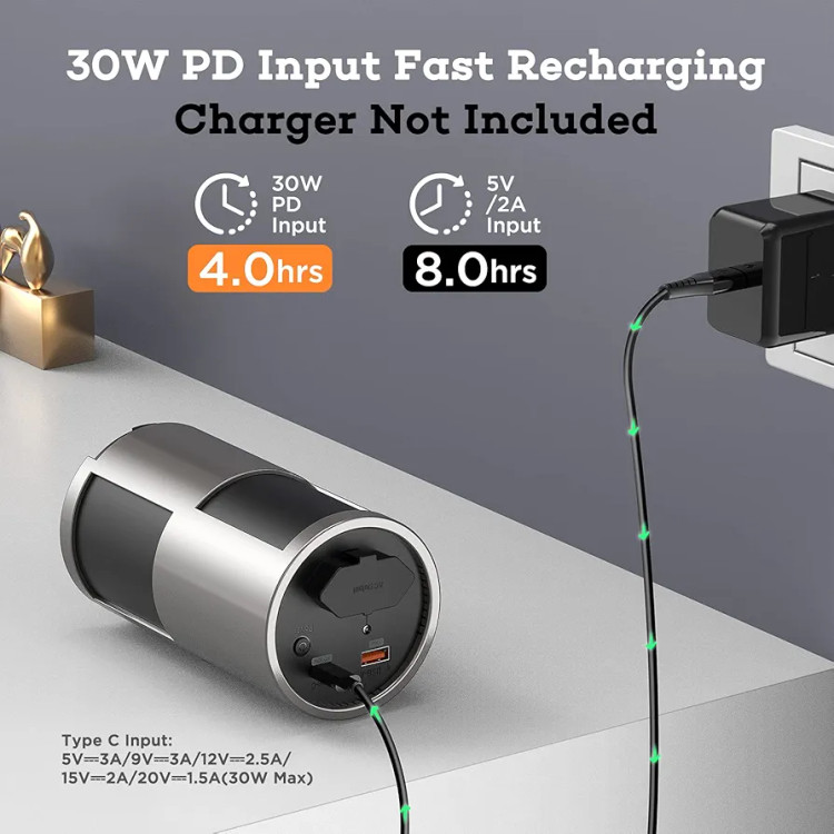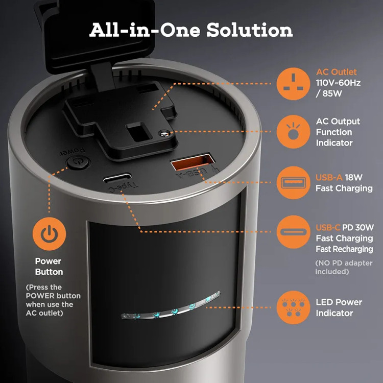 60W-83 W، فشرده و قابل حمل: اندازه: 80x80x155mm، ظرفیت 22500mAh و پاور بانک 72.36Wh با خروجی AC برای لپ تاپ، خروجی AC قدرتمند، 60W-83W Compact: 80x80x15…