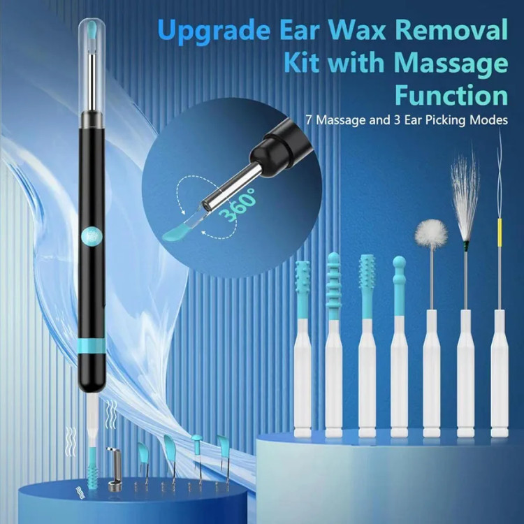 7 عملکرد ماساژ: مجموعه اتوسکوپ بهبود یافته برای حذف بصری جرم گوش با عملکرد ماساژ، 3 حالت لرزش، مجهز به 7 کیت ماساژ. شما به سادگی می توانید مجموعه ماساژ را بچرخانید تا آن را بردارید و جایگزین کنید. کیت حذف جرم گوش کوچک و قابل حمل است، شما می توانید گوش ها را در هر زمان و هر مکان بچینید