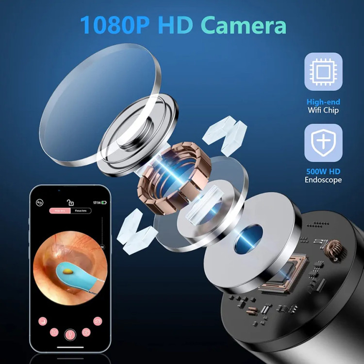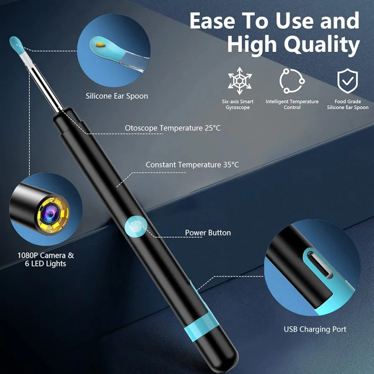 دوربین 1080P HD و استفاده آسان: استفاده از گوش پاک کن آسان است، به صورت بصری از طریق WiFi متصل می شود، نیازی به اتصال کابل نیست، می توانید با یک دکمه از آن استفاده کنید. پاک کننده جرم گوش ما مجهز به دوربین 1080P HD و 6 چراغ LED است که می تواند تصویر را در گوش بسیار واضح در 360 درجه بدون نقاط کور ببیند. به شما امکان می دهد گوش های خود را با خیال راحت تمیز کنید.