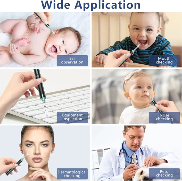 【IP67 و آندوسکوپ گوش ۳.۹ میلیمتری】کیت حذف جرم گوش ما دارای یک لنز فوقالعاده نازک با قطر ۳.۹ میلیمتر است که میتواند به راحتی و به راحتی با انواع مختلف کانال گوش سازگار شود. طراحی کنترل هوشمند غیر القایی، طراحی فوقالعاده از گرم شدن بیش از حد و سوزش در کانال گوش جلوگیری میکند، دمای آن با بدن انسان برابر است، باتری داخلی ۲۳۰ میلیآمپرساعت با ظرفیت بالا، لنز اتوسکوپ یک دوربین گوشی ضد آب با کیفیت Ip67 است و میتوان آن را با آب تمیز کرد یا با الکل ضدعفونی کرد. 【گوش پاک کن دوربین دار】گوش پاک کن هوشمند ما نه تنها برای پاک کردن جرم گوش استفاده میشود، بلکه برای مشاهده سلامت سایر قسمتهای بدن مانند دهان، سوراخهای بینی و فولیکولهای موی پوست سر نیز از طریق گوش پاک کن هوشمند دوربین دار قابل استفاده توسط کودکان، بزرگسالان و حیوانات خانگی است. (توجه: بهترین فاصله کانونی دوربین ۱.۵-۲ سانتیمتر است)