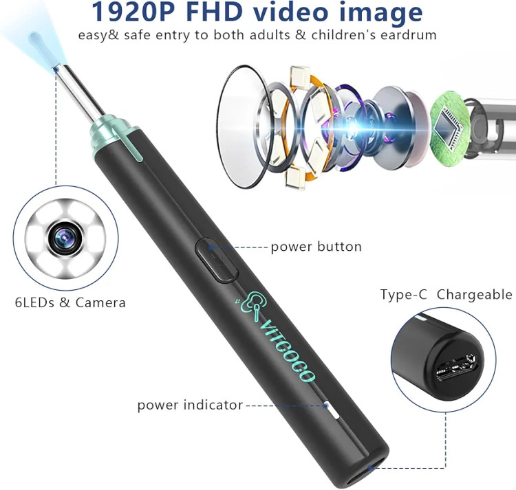 گوش پاک کن هوشمند دوربین دار برند ViTCOCO مدل Y13(برای کودکان می تواند به عنوان بینی پاک کن نیز استفاده شود)