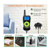 4 حالت آموزش، بوق، لرزش (سطح 0-99)، نور، شوک (سطح 0-99)، به شما امکان می دهد سطح تحریک را به سرعت در زمان نیاز تنظیم کنید و به شما کمک می کند تا مشکلات رفتاری غیرقابل کنترل سگ را حل کنید. حاوی 2 گیرنده قلاده و 1 فرستنده از راه دور، قلاده آموزش سگ برای سگ ها دارای طراحی 1+2 کانال و عملکرد حافظه برای تنظیمات است، به این معنی که می توانید 2 سگ را به طور همزمان از طریق تنها یک فرستنده از راه دور آموزش دهید. گیرنده یقه شوک سگ با شاخک سیلیکونی غیر قابل جابجایی، به پوست سگ شما آسیب نمی رساند، استفاده از آن هنگام آموزش ایمن تر است. نور LED و تسمه های بازتابی 360 درجه، به شما کمک می کند تا سگ های خود را راحت تر در محیط تاریک پیدا کنید. گیرنده قلاده آموزشی ضد آب است، اجازه دهید سگ شما از شنا، دوش گرفتن و بازی در باران لذت ببرد؛ بند قلاده قابل تنظیم برای سگ های بزرگ کوچک متوسط از 5 تا 140 پوند بسیار مناسب است. برد از راه دور قلاده شوک سگ ما می تواند به 2600 فوت در منطقه آزاد، تا 1800 فوت در منطقه مانع برسد، شما می توانید سگ خود را به راحتی در داخل و خارج از منزل آموزش دهید؛ گیرنده و کنترل از راه دور هر دو قابل شارژ هستند، یک USB عمومی. کابل شارژ موجود در بسته بندی پس از 2 ساعت شارژ کامل، یقه آموزش از راه دور قادر است 11-15 روز کار کند.