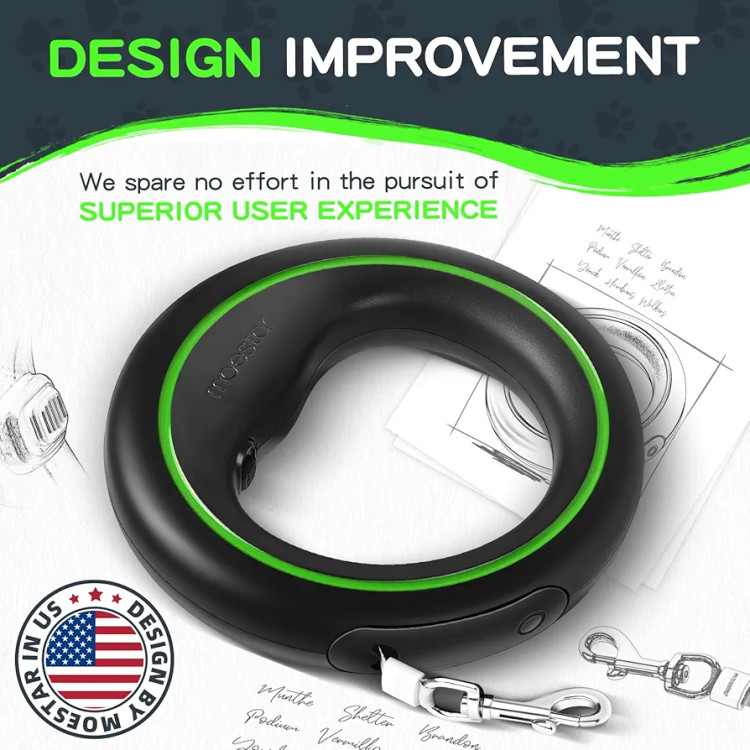 بادوام و محکم: قابل جمع شدن بند سگ moestar از مواد ABS پایدار و ضد ضربه ساخته شده است، با حداکثر طول 3 متر / 10 فوت و استحکام تا 80 کیلوگرم / 176 پوند. بیش از 50000 تست کشش MTBF توسط یک آزمایشگاه تست شخص ثالث را گذرانده است و از استحکام و دوام آن اطمینان حاصل کرده است. دکمه قفل/باز کردن قفل نیز بیش از 50000 تست MTBF را پشت سر گذاشته است که کار با آن را آسان کرده است.