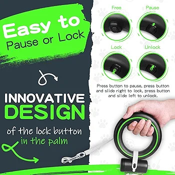 آسان برای کار: بند کشی سگ دارای یک دکمه چفت با یک لمس است که می توان به راحتی ترمز کرد، مکث کرد و فقط با انگشت اشاره قفل کرد. این امکان عملیات به موقع را برای جلوگیری از تعقیب حیوان خانگی فراهم می کند و شما و سگتان را ایمن نگه می دارد.