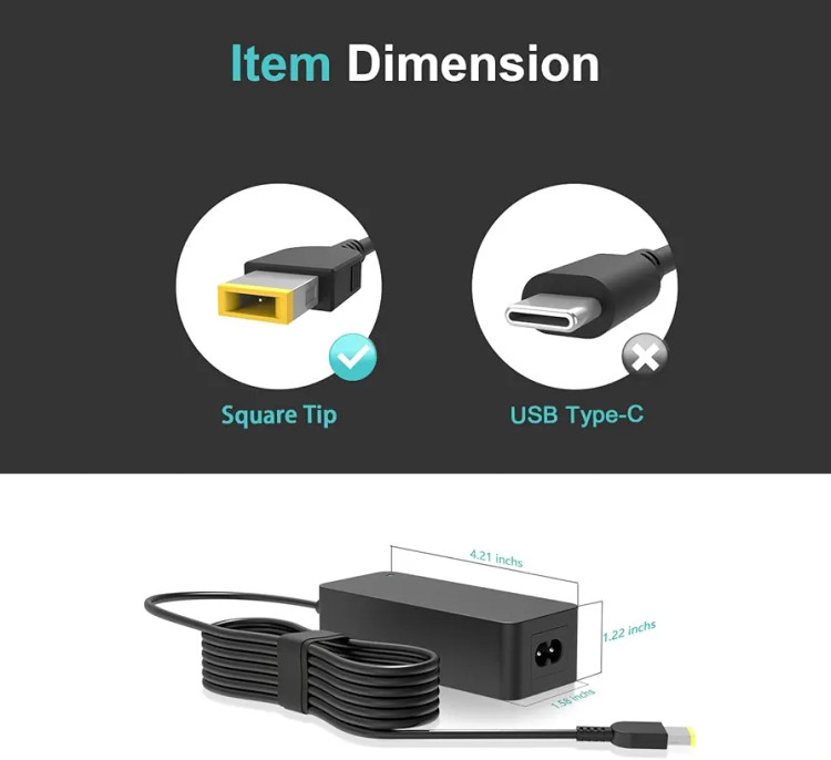 65W 45W AC Charger Fit for Lenovo Thinkbook 15 14 14s 13 13s Laptop Power Supply Adapter Cable