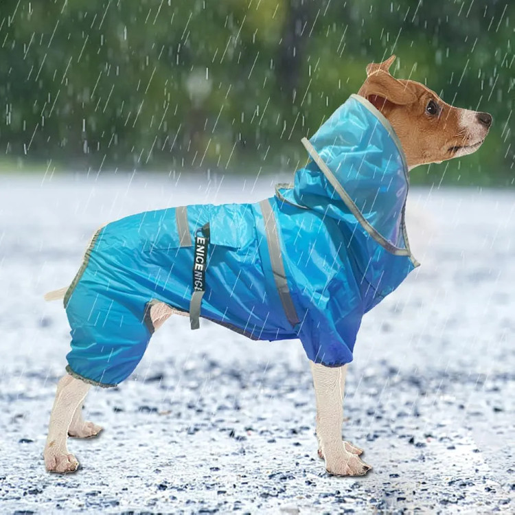 کاپشن بارانی کلاه دار سگ سایز مدیوم رنگ آبی(بار آمازون)