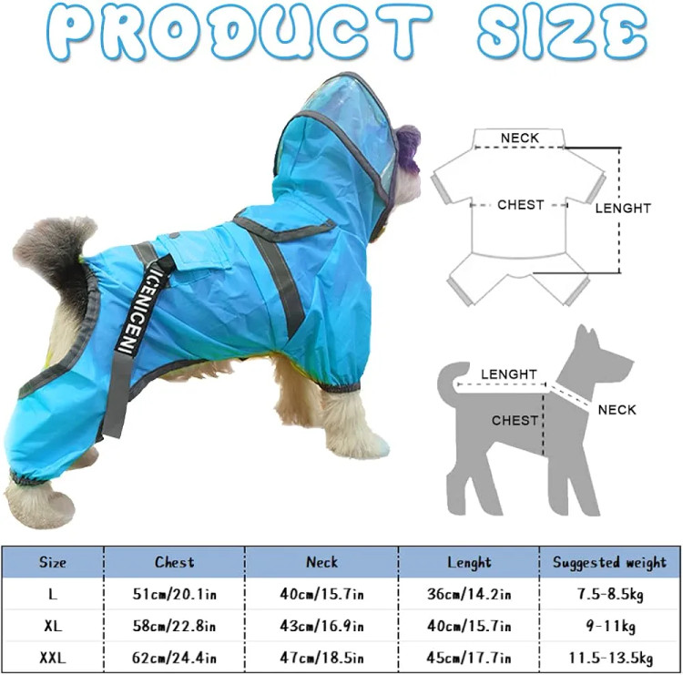 【ضد آب 】 بارانی سگ ضد آب ما با طراحی چهار پا، از مواد PVC با کیفیت بالا، ضد باران و ضد باد ساخته شده است. محافظت کاملی را برای حیوان خانگی شما در هوای بارانی فراهم می کند.