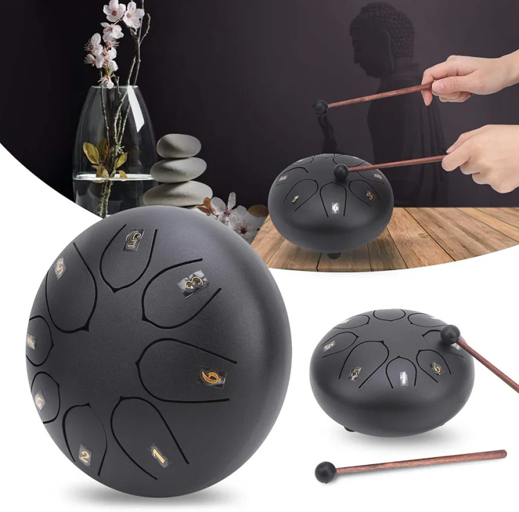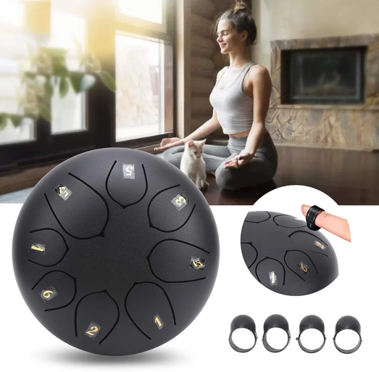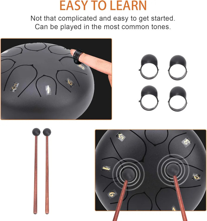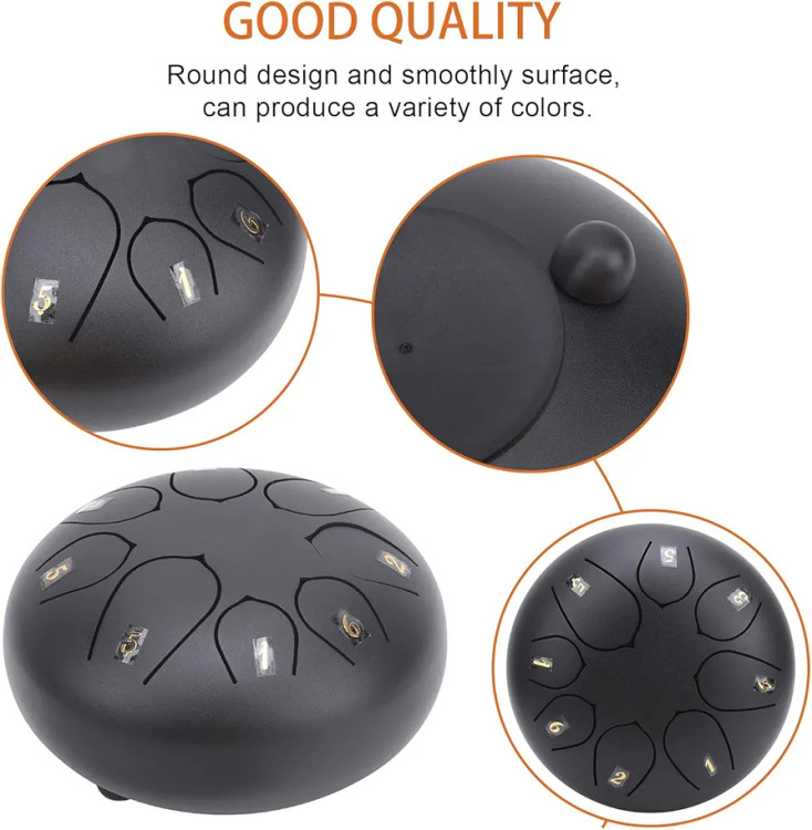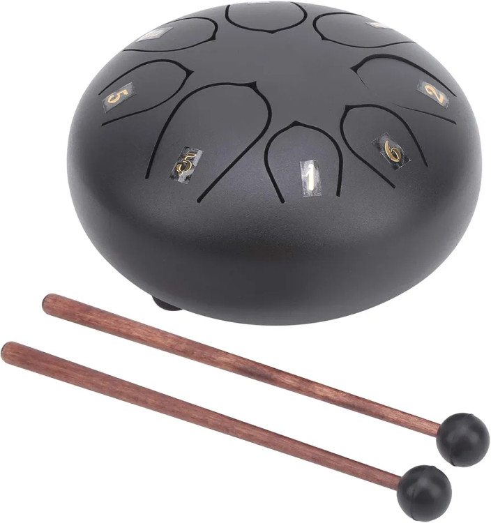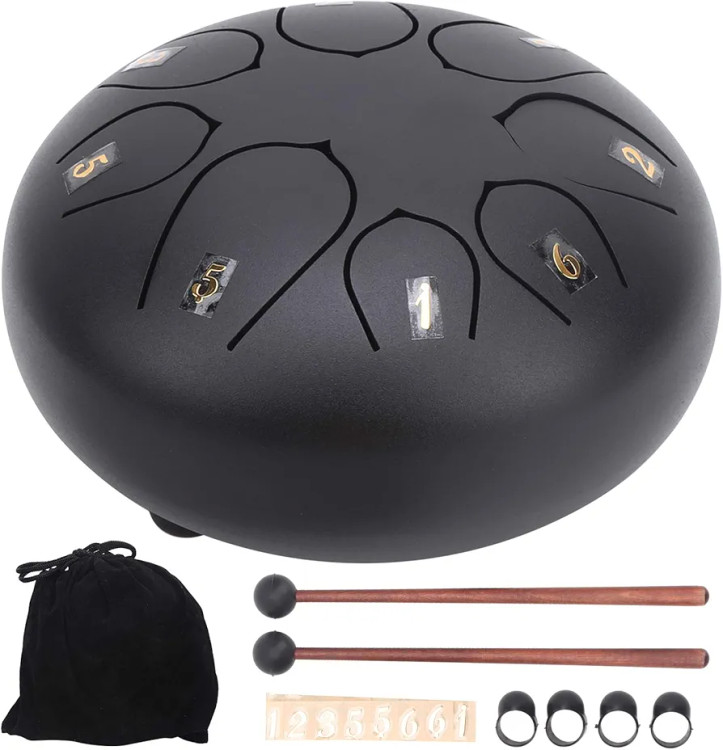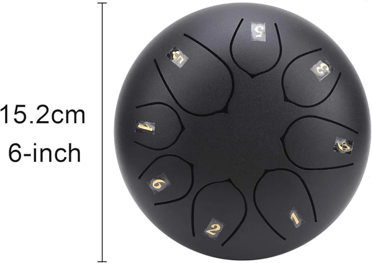 6-inch 8-note Steel Tongue Drum, Easy to Learn, Portable Musical Instrument for Beginners, Round Design, Storage Bag Included (Black 2671974)