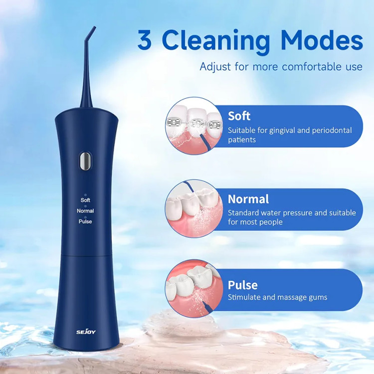 3 حالت تمیز کردن پلاک را حذف می کند: نخ دندان آب دارای سه حالت برای انتخاب است: ملایم، ضربان دار و معمولی، با طراحی آرام برای پاسخگویی به انواع نیازهای مراقبت از دهان. به طور موثر مشکلات مختلف دندان مانند زردی دندان ها، خونریزی لثه، باقی مانده غذا و پلاک را حل می کند.