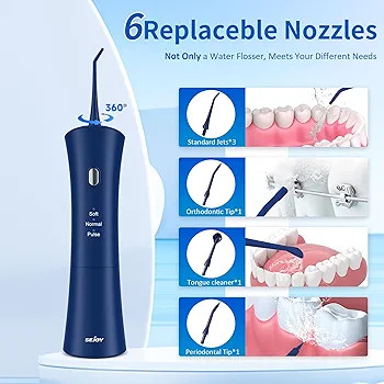 نازل 6 شکل با چرخش 360 درجه: برای افرادی که بریس، ایمپلنت، روکش یا جیب پریودنتال دارند عالی است. فلوسر آب شارژی دارای 6 نازل است: 3 نازل استاندارد، 1 پاک کننده زبان، 1 نوک ارتودنسی، 1 نوک پریودنتال که می توانید با خانواده خود از آنها استفاده کنید. نازل چرخشی 360 درجه به شما این امکان را می دهد که حتی مناطقی را که دسترسی به آن ها سخت است تمیز کنید و از پوسیدگی دندان جلوگیری می کند.