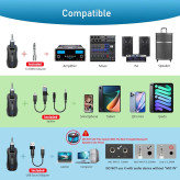 ➤【دوام باتری 6 ساعته و فاصله بی سیم 65FT】 فرستنده و گیرنده بی سیم توسط باتری های لیتیومی داخلی تغذیه می شوند. آنها را می توان به طور همزمان با کابل شارژ 2 در 1 شارژ کرد. چراغ نشانگر هنگام شارژ به رنگ قرمز در می آید و با شارژ کامل خاموش می شود. فرستنده و گیرنده را می توان در 2 ساعت به طور کامل شارژ کرد و تا 5-6 ساعت استفاده کرد. لطفاً از شارژر 5 ولت، 1A-2A برای شارژ استفاده کنید. شارژر گنجانده نشده است. فاصله انتقال بی سیم توصیه شده 65 فوت در منطقه باز است.